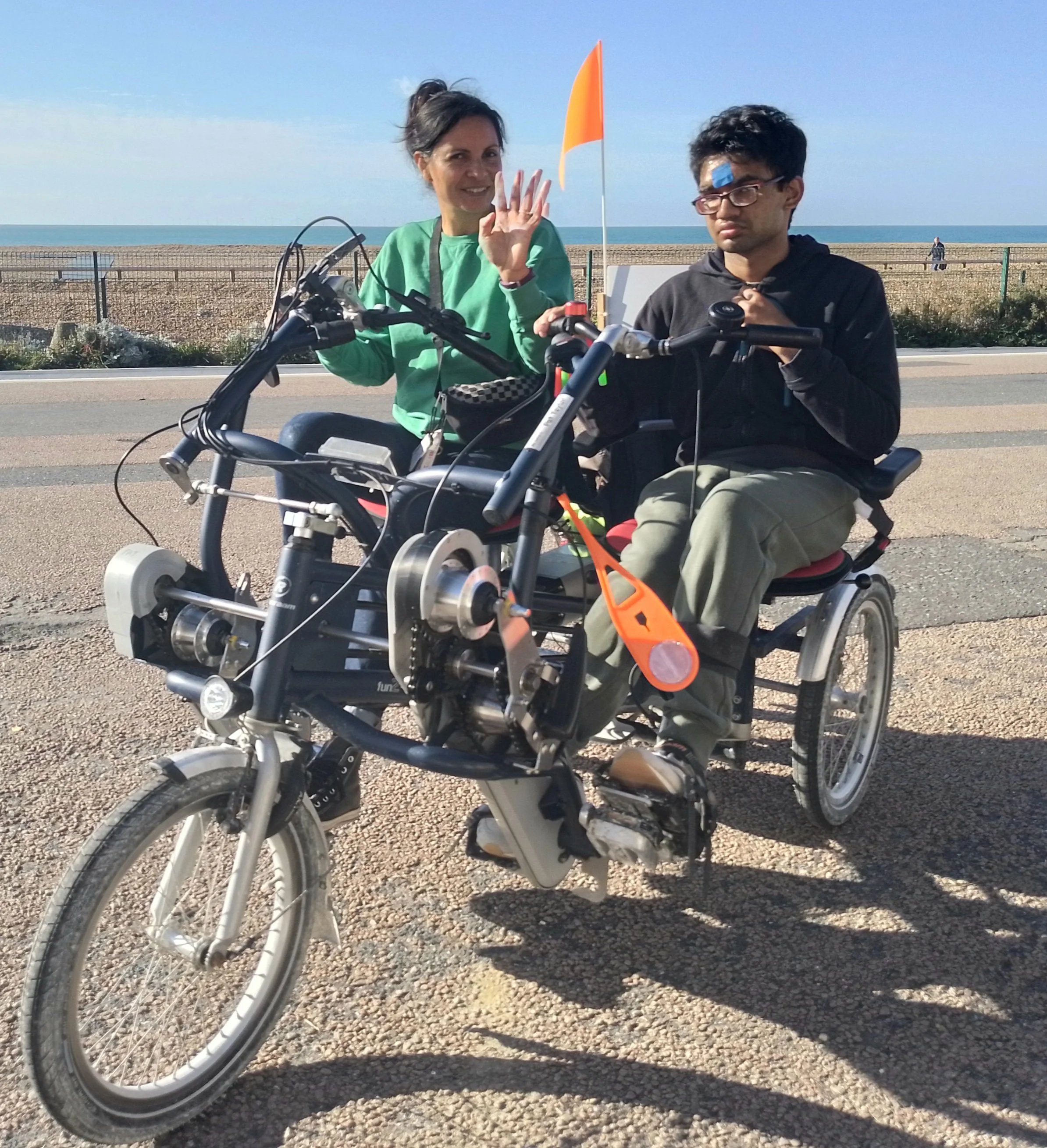 Later that year Elly (pic. with Duncan in our first cycle above) joins Duncan, having been inspired via global social media and wanting to bring inclusive cycling to Brighton. Together they work 7 days a week and launch the charity 8 weeks later in September. We feature on local and national media including national BBC Breakfast TV.
